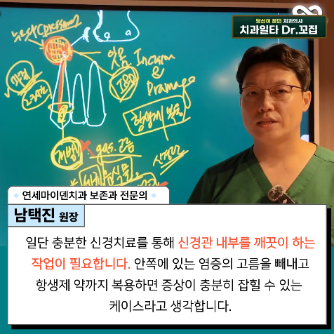 2️⃣ 신경관을 통해 고름을 빼주는 것이 좋지만,